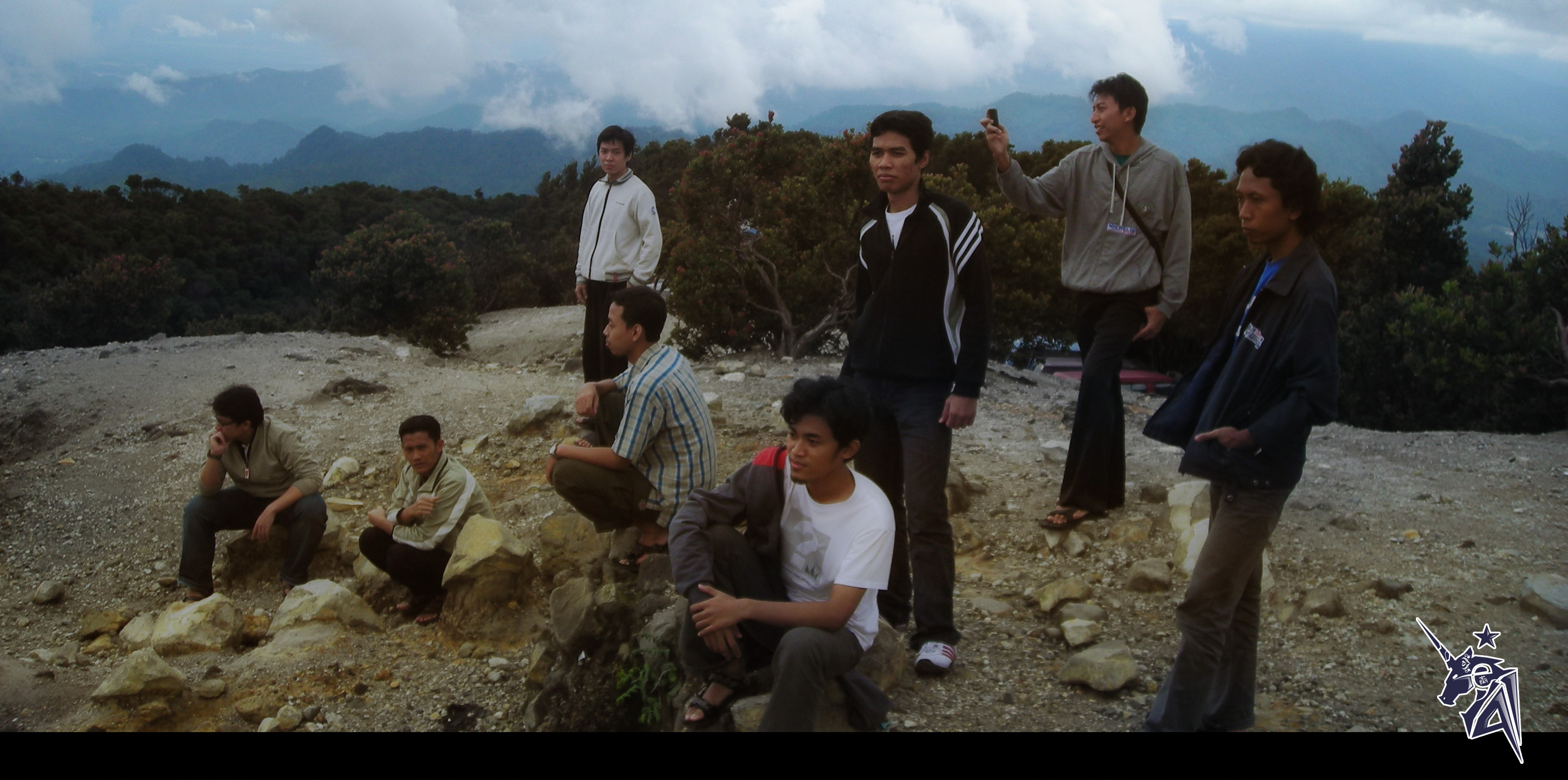 Kita pun sampe di Kawah Ratu (2084 mpl). Hawa dingin menyelimut (17oC ) gunung yang terakhir meletus tahun 1910 ini dan cuaca pun sedikit mendung. Disini kita bisa melihat panorama kota dibawah gunung, ada yang sedang ternaungi mendung dan ada yang cuaca lokalnya cerah.