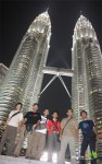 Sebelum kembali ke hostel aku berencana untuk motret Twin Tower lagi. Mungkin akan lebih menarik jika pada malam hari pikirku. Ketika lagi asyik mencari spot yang bagus aku melihat lima sosok yang tidak asing bagiku. Kulihat salah satu dari mereka mengenakan kaos merk Thai Line. Yup, itu Edo dan sahabat-sahabatku. Mereka sedang bersiap-siap foto bersama. Aku langsung lari ke arah mereka, mengejar timer DSLR Canon nya Ervan.