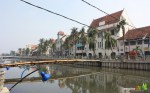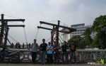 Perjalanan pertama adalah menuju Jl. Kali Besar. Di daerah ini kami menemui sungai yang cukup lebar tapi kotor (biasa…sungai perkotaan) dimana di kedua sisinya terdapat jalan. Menurut Guide, dulu sungai ini menjadi jalur lalu lintas kapal laut untuk bongkar muatan. Karena itu daerah muara Ciliwung yang dulu bernama Grootegracht/Groote River ( artinya : Kali Besar ) ini juga merupakan pusat kegiatan perekonomian dan perdagangan Batavia. Di arah utara kami melihat sebuah jembatan warna coklat tua yang dulu berfungsi mengatur masuk keluarnya kapal ke Kali Besar, yaitu Jembatan Kota Intan. Jembatan yang dibangun tahun 1628 ini sudah tidak difungsikan selain sudah tua juga karena dermaga untuk bongkar muat sudah digeser jauh ke utara ( Pelabuhan Sunda Kelapa).