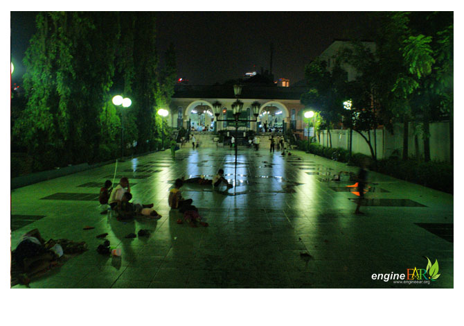 Kami turun tepat di depan Taman Suropati. Tapi kami tidak melihat adanya keberadaan masjid. Kami pun bertanya pada petugas DLAJJ . Beliau menunjuk jalan ke arah utara. Dengan perut yang masih kosong kami pun berjalan ke arah utara. Saat itu sudah pukul 20.00 WIB. Karena meragukan keterangan petugas DLAJJ, akupun bertanya pada seorang tukang ojek yang lagi mangkir. Dan seperti yang kami kawatirkan, keterangan petugas DLAJJ itu salah. Ternyata masjid ada di belakang Gedung Bapenas, dimana Gedung itu tepat di depan Taman Suropati.