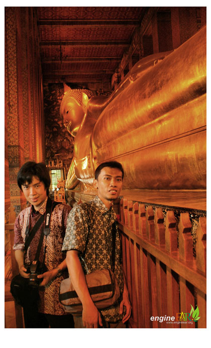 Tujuan pertama hari itu adalah Patung Buddha Tidur ( Reclining Buddha ) di Wat Pho (วัดโพธิ์),, daerah Phra Nakhon. Wat Pho sendiri adalah komplek pagoda (Wat) terbesar dan tertua di Bangkok. Dan juga merupakan tempat asal mula terciptanya teknik pijat tradisional Thailand. Nama resminya adalah Wat Phra Chetuphon Vimolmangklararm Rajwaramahaviharn (Thai: วัดพระเชตุพนวิมลมังคลาราม ราชวรมหาวิหาร), sebuah Wat yang dibangun sekitar 200 tahun sebelum Bangkok menjadi ibukota kerajaan.