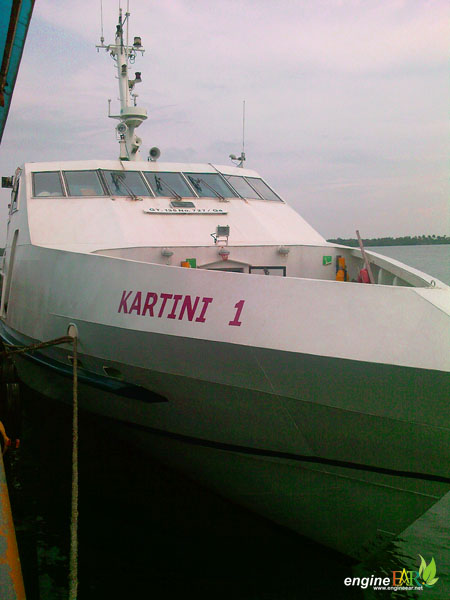 Seharusnya kami harus sampai di Jepara sebelum jam 7 pagi, namun tampaknya tak mungkin bagiku. Demikian juga dengan Mantos, pukul 6 dia masih di semarang. Aku bertanya pada Mantos, apakah misi kali ini akan gagal? Dia menjawab nikmati saja perjalanan dan lihat saja nanti. Dia juga memberi info bahwa ada kapal kartini dari Semarang ke Karimun Jawa pukul 9 pagi dan menyarankan saya naik itu saja. Perlu diketahui KMC Kartini hanya berangkat dari Semarang dan merupakan Kapal Motor Cepat, sedangkan kapal yang berangkat dari Jepara adalah KM Muria yang merupakan kapal ferry. Pukul 07.30 bis tiba di kendal dan kemudian berbelok ke arah restoran. “Istirahat”, teriak kondektur. Waduh, mengapa disaat terburu-buru harus istirahat. Kulihat ada beberapa penumpang yang tampaknya juga terburu-buru. Dia menurunkan barangnya dan kemudian naik angkutan umum berupa elf yang lewat. Aku tanya pada tukang parkir di sana kemana arah angkutan itu. Setelah mengetahui arahnya ke Semarang, aku minta bantuannya untuk memanggil atau menghentikan salah satunya. Sekitar 40 menit kemudian sampailah di semarang, tetapi angkutannya tidak ke terminal melainkan berhenti di bundaran. Itulah tujuan akhirnya kata kernetnya. Untunglah ada taxi yang ngetem dekat sana. Tanpa pikir panjang aku pun naik. “Pelabuhan Tanjung Mas, Pak” kataku. Kulihat di dompetku tersisa Rp 50.000,-, semoga ongkosnya tidak lebih harapku. Sesampainya di pelabuhan ongkosnya sekitar Rp 20.0000,-. Aku turun di area parkiran, begitulah tempat itu terlihat. Aku bertanya kepada beberapa orang yang berada di sana dimana kapal menuju Karimun Jawa. “Oh mau ke Karimun Jawa toh Mas, di sana mas masih jauh”. Waduh, seharusnya aku bertanya dulu tadi sebelum taxinya pergi. “Saya bisa antar Mas, Rp. 5000 saja” kata seorang bapak. Wow kebetulah sekali. Aku teringat hanya tersisa Rp. 30.000,- an di dompetku.”Pak ada ATM ga di dekat sini?” tanyaku. “Ada Mas dekat sini” jawabnya. Ternyata tiap masalah ada jawabannya. 200 m dari ATM, di sanalah terlihat KMC Kartini bersandar. Tempat itu sudah ramai dengan beberapa orang. Ku lihat ada meja di sana dan seseorang berpakaian seragam disana. Dia lah yang menjual tiket. Aku menuju ke meja itu dan bertanya, “Pak masih ada tiketnya?”. “Sudah habis mas.” Jawabnya. Mendengarnya seperti langit runtuh. “Masa ga ada lagi pak? Satu saja” tanyaku. “Tunggu aja mas”, katanya. Dia beranjak dari kursinya dan menuju ke teman-temannya yang memeriksa tiket penumpang di pintu masuk kapal. Kemudiant terlihat seseorang ibu-ibu menghampiri dan berbincang dengan mereka. Kemudian Bapak tadi memanggilku,”Ini mas ada satu, orangnya ga jadi berangkat”. “Berapa pak?” tanyaku. “130 ribu” kata ibu-ibu disebelahnya. “Pulangnya kapan mas?”. “Selasa. “Oh naik Muria ya?”. “Ya bu”. Aku pun naik ke kapal. Dengan perasaan lega dan badan letih aku tertidur di kursi.
