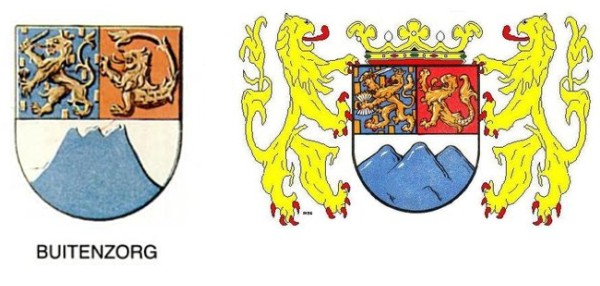 Bogor di masa Hindia Belanda dikenal dengan nama Buitenzorg. Lambang buitenzorg terdiri dari perisai yang terbagi menjadi 3 bagian.
