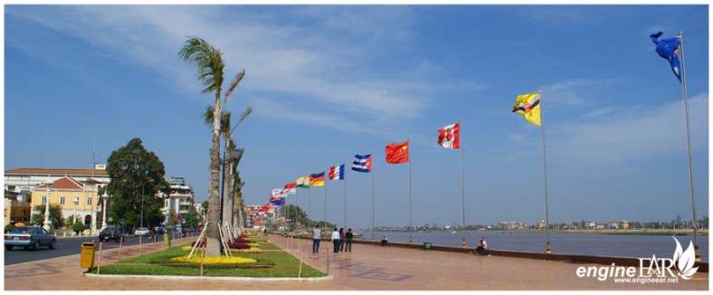 Adalah nama dari riverside Mekong yang melintas di sisi timur Royal Palace. Area sepanjang 3 km ini cukup terawat dimana pohon palm dan rerumputan pada taman terlihat baik. Di sini dikibarkan bendera semua negara – negara sahabat dengan ukuran yang besar. Begitu memberi kesan betapa Kerajaan Kamboja begitu menghormati dan menghargai makna dari persahabatan hubungan bernegara, meskipun negara ini sedikit condong ke arah komunisme. Oiya dari sini kita bisa melihat Victory Gate dari Royal Palace, secara kami kelewat melihatnya saat di dalam Royal Palace.