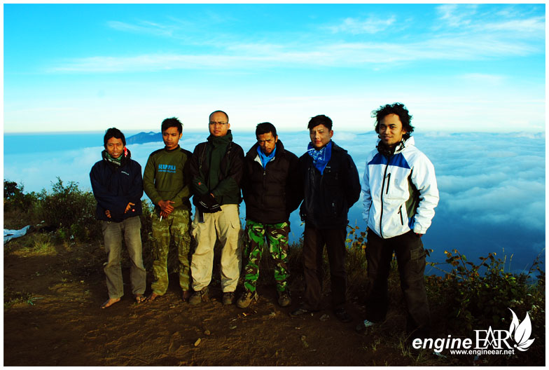 Dingin membelit tulang. Waktu menunjuk angka lima. Pagi telah menggeliat, aku pun keluar dari tenda. Di luar telah ramai para pendaki yang menunggu sunrise. Mantos sudah menyiapkan tripod, tangannya sibuk men-set kamera. Namun akung sang mentari tenggelam dalam tebalnya awan.