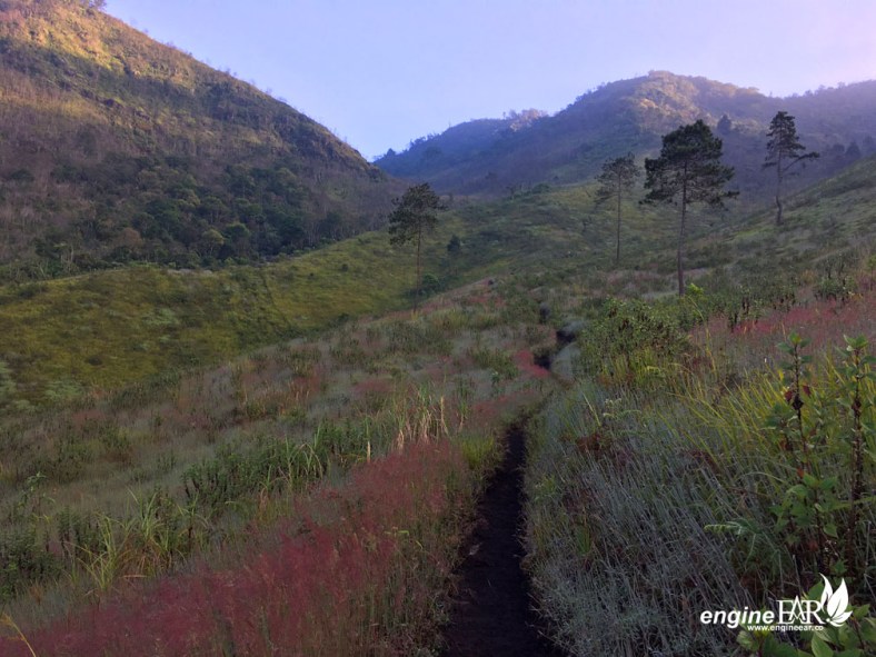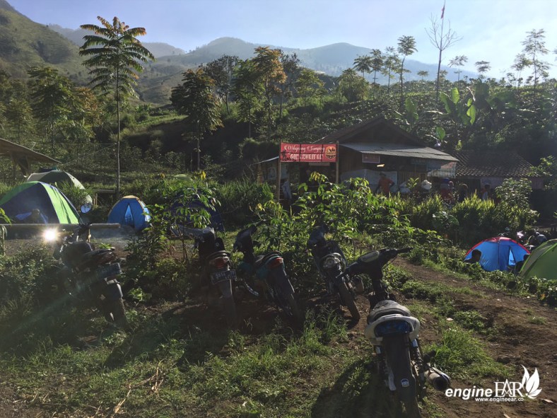 Pantatku terasa ngilu, sengilu telingaku mendengarkan “tetangga” menyanyikan lagu dengan gubahan lirik yang “seronok”. Rupanya gundukan tanah (mungkin batu )berada tepat di bawah pantat yang mengganggu pulasku. Padahal sebelum mendirikan tenda hingga beranjak tidur, gundukan ini sepertinya tidak bakal mengganggu. Entah berapa kali aku terjaga karena ketidaknyamanan itu hingga waktu menunjukkan waktu 04.30 WIB. Aku pun membangunkan Mant dan Ardi agar lekas berbenah untuk persiapan turun sekaligus menikmati Sunrise