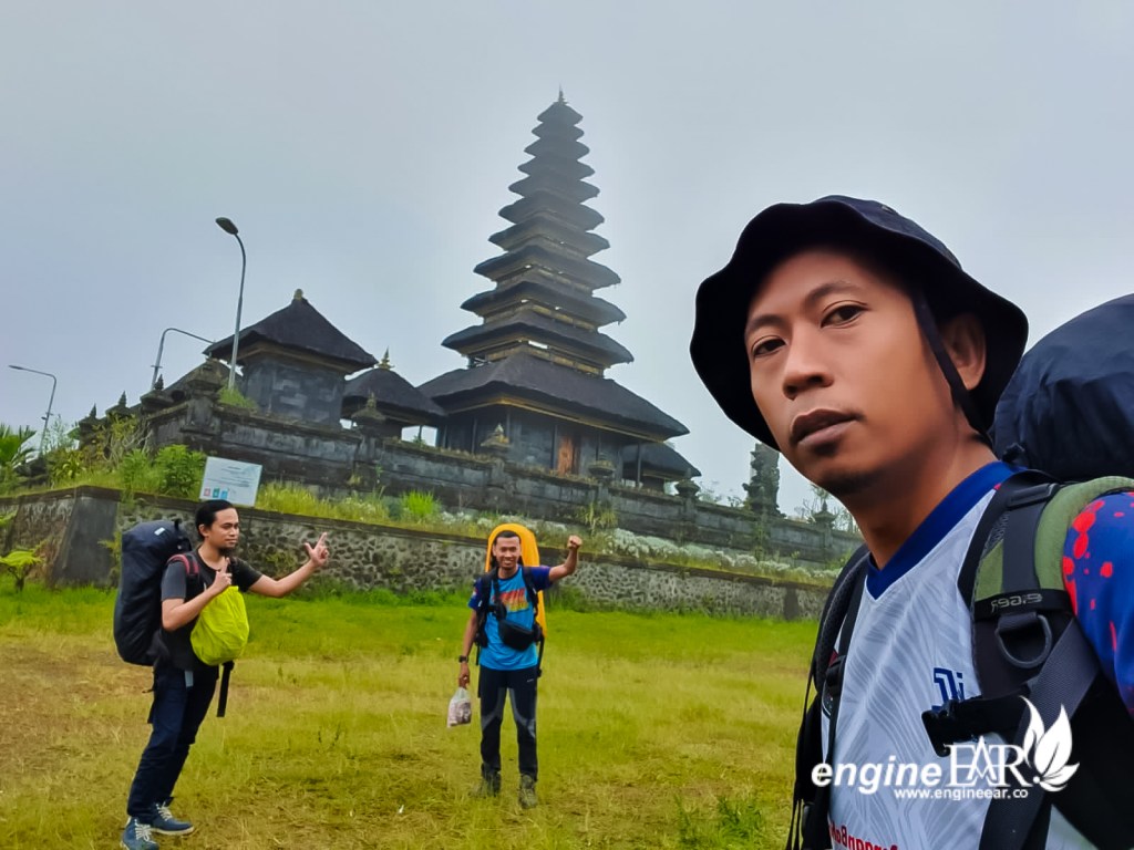 Pukul 10.15 WITA kami sampai di halaman Pura Pengubengan. Kabut masih cukup pekat pagi itu. Pos pendaftaran pun masih tutup… (atau memang ga pernah buka ya ?) . Sejenak kami melakukan pemanasan ringan sembari memastikan apa saja yang perlu dilengkapi mumpung ada warung buka di depan pura.