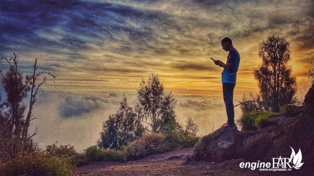 Mengiringi hadirnya senja, milyaran tetes air selepas berwujud uap terkondensasi lalu bergulung lembut dan rapat searah angin bertiup. Mewujudkan lautan awan yang menggetarkan imajinasi. Dingin dan hangat silih berganti meraba raga kami hingga akhirnya waktu pun menutup hari itu dengan tirai malam.